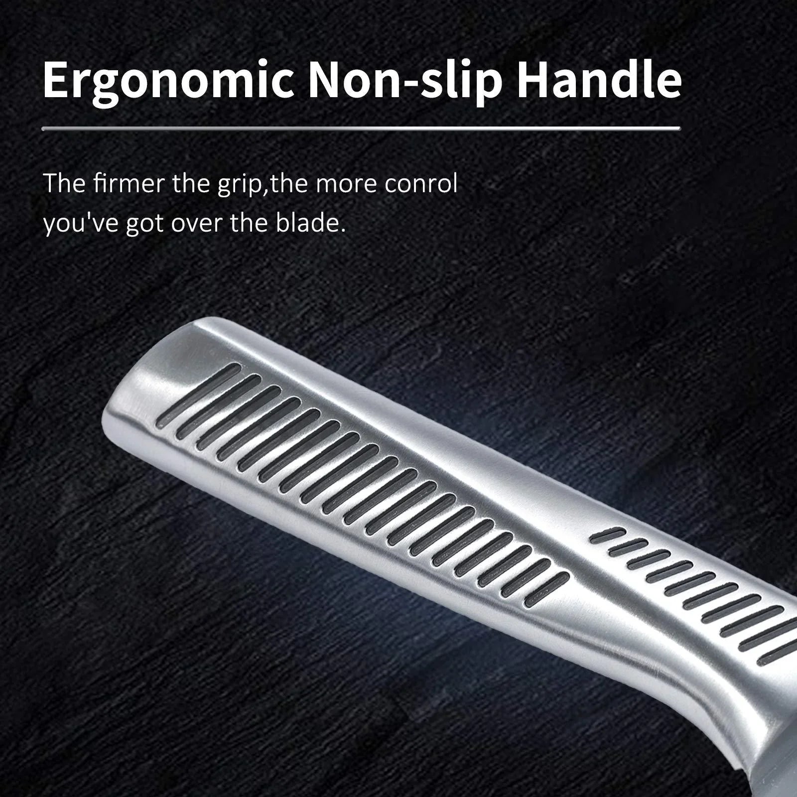 • 【ERGONOMIC Hollow HANDLE】 - Stainless Steel hollow handles gives a lot of character and beauty to kitchen knives. Full tang knife blade provides maximum comfort and stability while cutting, which can enjoy cooking more faster, easier and cleaner.